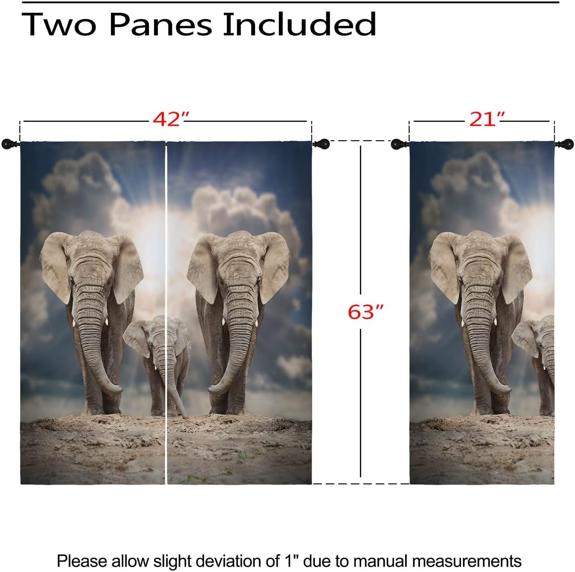These print curtains are perfect for Living room, bedroom, kids room, kitchen, yard, patio, parlor, sliding door with Elephant, African Wild Animal Family Exotic pattern.- Unique design:· Save energy costs by insulating against heat and cold.· Reduce noises from busy streets and high-traffic areas.· Protect furniture from sun damage and fading.· Provides complete privacy when needed· Perfect for any bedroom, office kids room and living room.- Package Included:· Blackout window curtains 2 Pcs set ( two panels).- Material:· Our Blackout Curtain Liners are crafted from a Long lasting soft and thick triple weaved blackout fabric which can block out sunlight and UV rays. The darker color of the fabric, the more light it can block.- Easy Care Instructions:· Machine washable in cold water· Do not bleach.· tumble dry on low· low temperature ironing- Notes:· For your curtains to be more perfect, please choose a size 5-10 Inch larger than the actual window width.· here may be slight differences in colors on different displays.