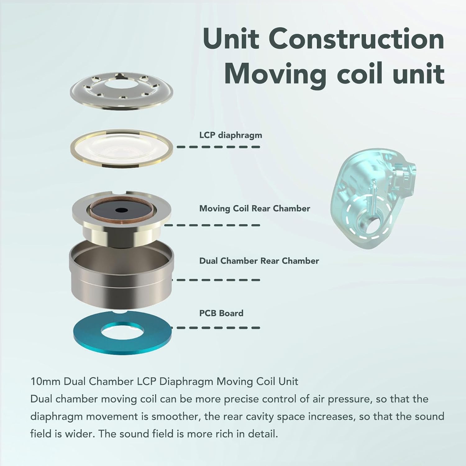 1. Dual Driver Configuration: The wired earphone features a unique dual driver setup on each side, utilizing a 10mm dual cavity dynamic driver with an LCP diaphragm as the active driver, paired with a passive driver. This configuration delivers a balance of clarity and dynamism through the interplay of driver functions. 2. Advanced Acoustic Design: The active driver is a full frequency unit with dual cavity design combined with a 6.8mm flexible diaphragm passive driver. This sophisticated pairing manages air pressure within the chambers and suppresses excessive frequencies, ensuring a clean and crisp sound output. 3. Superior Airflow Management: The wired earbuds employ an air assisted circulation system that allows the LCP diaphragm to drive the passive driver efficiently. The cavity is expertly developed for excellent aerodynamic control, enabling smoother cycling of around the driver. Specification: Item Type: Wired Earphone Material: Aluminum Alloy, Silver Plated Copper Speaker Diameter: 10mm/0.39in Impedance: 32Ω Sensitivity: 110dB Frequency Response: 7 to 40KHz Pin Type: 0.78mm 2 Pin Cable Length: Approx. 1.2m/3.9ft packing list: 2 x Earbuds 1 x Earphone Case 1 x Earphone Cable 12 x Ear Tips 2 x Ear Plugs 1 x Brush 1 x Plastic Box 1 x Metal Plate 1 x User Manual