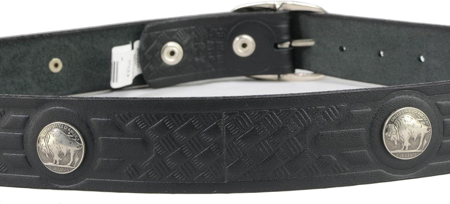 Milwaukee Leather MP7123 Men's Cross Hatch & 5 Cent Buffalo-Black Genuine Leather Belt w/Interchangeable Buckle-1.5 In Wide - 32