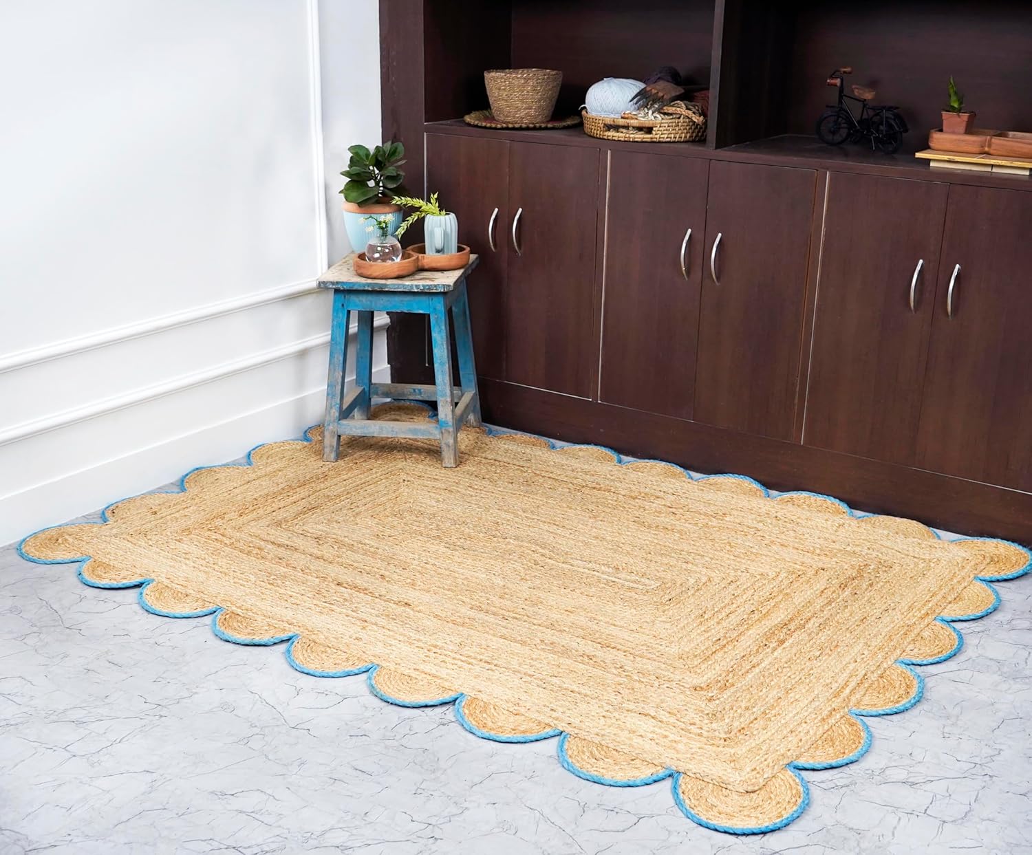 Scalloped Jute Rug Add a touch of organic elegance to your home with our Scalloped Jute Rug. Handcrafted from natural, eco-friendly jute, this rug boasts a charming scallop pattern that brings a fun yet sophisticated vibe to any room. The durable jute fibers are ideal for high-traffic areas, providing both beauty and functionality. Its neutral tones blend seamlessly with any décor, making it a versatile piece that complements modern, boho, or rustic styles. Perfect for living rooms, bedrooms, or entryways, this rug offers a cozy, textured feel underfoot while celebrating nature’s finest materials.